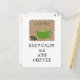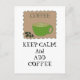 A cool design featuring a mug full of steaming coffee, a few beans beside it on a brown coffee sign. Says Keep calm and add coffee!