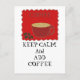 A cool design featuring a mug full of steaming coffee, a few beans beside it on a red coffee sign. Says Keep calm and add coffee!