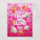 Keep Calm And Aloha On with starfish and seashells. Aloha means more the a greeting, farewell, or love. Aloha On refers to the Hawaiian Aloha Spirit, respecting nature and the natural world. Pink background of Hawaiian Hibiscus flowers and Hawaiian Honu sea turtles.