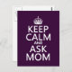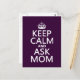 This reads Keep Calm and Ask Mum, in the style of the classic keep calm poster. It's great advice in times of calamity or emergency. This design is popular with everyone and makes great gifts and cards for mothering sunday, or any time of the year.