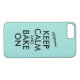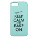 This custom iphone or other phone case has a kitchen whisk and says Keep Calm and Bake On.
