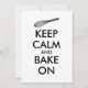 These custom invitations have a kitchen whisk and say Keep Calm and Bake On.