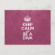 Keep Calm and Be a Diva, Pink Leather, Typography Postcard