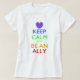 Celebrate pride with this fun design that spoofs the famous British propaganda phrase, which here reads "Keep Calm and Be An Ally" in the same poster-style all capital font. The words are in rainbow colours and the crown icon has been replaced by a purple heart. This is made for everyone who knows that love is love.
