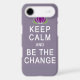 Beautiful muted lavender case with purple lotus flower and text that reads Keep Calm and Be the Change. Be reminded of your spiritual side every day when you see this calming and lovely phone cover. Or give them as gifts to your friends in yoga class. Copyright Scarebaby Design.