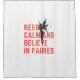 A cute shower curtain that says " Keep Calm and Believe in Fairies"