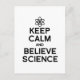 KEEP CALM AND BELIEVE SCIENCE POSTCARD