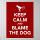 Keep Calm and Blame the Dog. Man's best friend, especially when you've just farted - it's always a great excuse to blame the dog! In the style of the famous Keep Calm and Carry On poster. Retro charm with a twist!