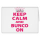 Keep Calm and Bunco On Design. Fun graphic design that will be a hit at your next Bunco event. Purchase one as a prize or gift. Features a crown and three dice. You can change the background colour on most items.