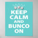 Keep Calm and Bunco On fun graphic design. Add this wall poster to your office, kitchen, game room or other room. Display at your next Bunco party. Makes a great decorating accessory. Use as a prize or gift. Background colour can be changed.