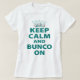 Keep Calm and Bunco On graphic fun design. Great gift or prizes for your next Bunco event. Featured is a crown and three dice.