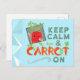 Fun Punny Garden carrot motivational quote pun: Keep Calm and Carrot On or Keep Calm and Carry On. Beautiful hand drawn happy carrot posing in a frame and whimsical carrot flower typography to make this design bright and unique. Use this bright carrot design to help spread the positive message of staying calm, breathe, work through problems one at a time, and then move forward on achieving your dreams.