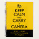 Keep Calm and Carry A Camera and record and plan in this personalised planner. Great for photographers who use their camera (or cell phone) for hobby or professional photography or class assignments. Personalise the front and back covers. You can change the background colour if you like.
