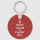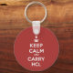 This design features the phrase "Keep Calm and Carry HCl" in white text, with a crown-shaped splash of HCl from a squeeze bottle at the top.