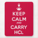 This design features the phrase "Keep Calm and Carry HCl" in white text, with a crown-shaped splash of HCl from a squeeze bottle at the top.