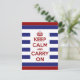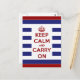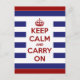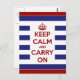 Keep Calm and Carry On Blue and White Stripe Postcard