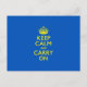 KEEP CALM AND CARRY ON Blue Postcard