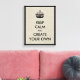 Keep Calm and Carry On create your own in black text with printed photo effect of beige linen and a black border. Customisable template with black crown. Personalise using the template fields. Great motivational gift. Have fun creating your own unique Keep Calm and Carry On version and give them to your family and friends.