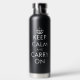 Keep calm and carry on funny large hiking Water Bottle. Modern typography design with crown. Personalise with your own funny keep calm and carry on quote plus colours. Unique gifts and party favours. Extra large Thor Copper Vacuum Insulated Drink Bottle. Great for sports, hiking, work and other big activities.