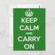 Keep Calm and Carry On Green Postcard