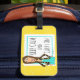 Fun brightly coloured bag tag/luggage tag with a great statement about life and travel. Happy Adventures!