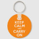 Keep Calm and Carry On vintage-style design against a bright rainbow orange background.