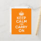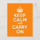 Keep Calm and Carry On vintage-style design against a bright rainbow orange background.