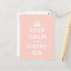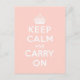 Pink and white keep calm and carry on To change size has your taste. This design makes reference to the famous poster appeared during the Second World War.