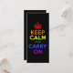 Keep Calm and Carry On vintage-style design in a rainbow of colours against a black background.