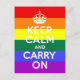 Keep Calm and Carry On vintage-style design against a rainbow design.