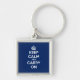 Keep Calm and Carry On with this square keychain in dark blue.
