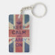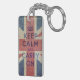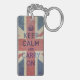 Vintage design: "Keep Calm and Carry On" with UK flag background.