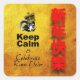 Popular "Keep calm" with a royal Ram + large vertical red greetings in Chinese onto a golden background (printed image n°2 of textured paper). Design on square sticker. Matching greeting card. Perfect for Chinese New Year of the Goat, Ram or Sheep Year with an occidental accent.