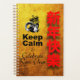 Popular "Keep calm" with a royal Ram + large vertical red greetings in Chinese onto a golden background (printed image n°2 of textured paper). Design on spiral planner. Perfect for Chinese New Year of the Goat, Ram or Sheep Year with an occidental accent.