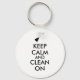 It says Keep Calm and Clean On. You can change the words and add your own text in the template to personalise, if you want.