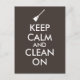 It says Keep Calm and Clean On. You can change the words and add your own text in the template to personalise, if you want.
