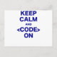 Keep Calm and Code On Postcard