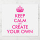 Hello and welcome, create and customise your own "keep calm" design for this one is unique! Replace the words "keep calm and create your own" by the word of your choice and choose the background colour you want! You can imagine and do everything!! ex: "keep calm and carry on" "keep calm and dance on" "keep calm and love me" ... have fun, let your creativity!