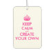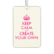 Hello and welcome, create and customise your own "keep calm" design for this one is unique! Replace the words "keep calm and create your own" by the word of your choice and choose the background colour you want! You can imagine and do everything!! ex: "keep calm and carry on" "keep calm and dance on" "keep calm and love me" ... have fun, let your creativity!