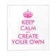 Hello and welcome, create and customise your own "keep calm" design for this one is unique! Replace the words "keep calm and create your own" by the word of your choice and choose the background colour you want! You can imagine and do everything!! ex: "keep calm and carry on" "keep calm and dance on" "keep calm and love me" ... have fun, let your creativity! If you have a problem, do not hesitate to contact me: grafik.prod@gmail.