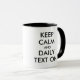 Start your day with encouragement using this “Keep Calm and Daily Text On” mug! It's fully customizable, so you can personalize the language, colors, and text style to match your preference.