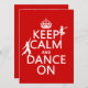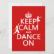 This reads Keep Calm and Dance On, in the style of the classic keep calm poster. There are two dancers dancing on top of the letters. It's a beautiful design, which makes great gifts for dance teachers, dancing groups, or anyone who loves dance.