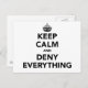 Keep Calm and Deny Everything. A sound strategy - certainly works for me! Based on the popular Keep Calm and Carry on meme.