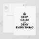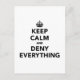 Keep Calm and Deny Everything. A sound strategy - certainly works for me! Based on the Keep Calm and Carry on design
