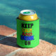 Introducing the "Keep Calm And Drink On" can cooler – the ultimate accessory for relaxation and enjoyment. This vibrant green cooler is designed with the classic phrase "Keep Calm And Drink On," offering a playful yet reassuring message perfect for any occasion. Whether you're hosting a backyard barbecue, lounging at the beach, or unwinding after a long day, this cooler ensures your drink stays cool and your vibes stay chill. Made with high-quality materials, the "Keep Calm And Drink On" cooler combines durability with a touch of humour, making it an ideal gift for friends, family, or even yourself. Its eye-catching design and practical functionality make it a must-have for anyone who appreciates a good drink and a good laugh. Elevate your beverage experience and keep the good times rolling with this fun and stylish can cooler.