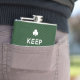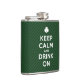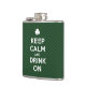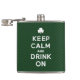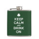St. Patrick's Day flask with Irish shamrock and funny slogan - Keep Calm And Drink On - parody of the Keep Calm And Carry On WWII British propaganda poster.