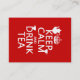 This reads Keep Calm and Drink Tea, in the style of the classic keep calm poster. I've added a posh teapot and delicate tea cups sitting on the words. It adds an extra british element to the ultimate british sentiment. It's a fun and cute design, and makes wonderful gifts for anyone who loves tea, or as decor for tea shops / coffee shops / cafes and the like.