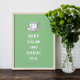 A funny twist on the old british Keep Calm and Carry On ww2 propaganda. Here in a vintage and retro design in green with an illustration of a cute teacup and herbs. A lovely gift for any person who loves tea.