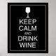 Black and white wine glass "Keep Calm and Drink Wine" design is a parody of the "Keep Calm" WWII era poster.