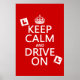 This reads Keep Calm and Drive On, in the style of the classic keep calm poster. There are two L plates beside the words. It's a wonderful design, and makes great cards and gifts for learners and driving instructors alike.